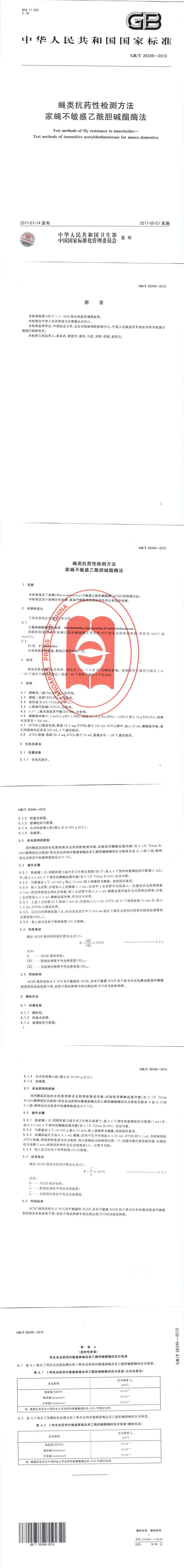 GBT 26348-2010 蚊虫抗药性检测方法 不敏感乙酰